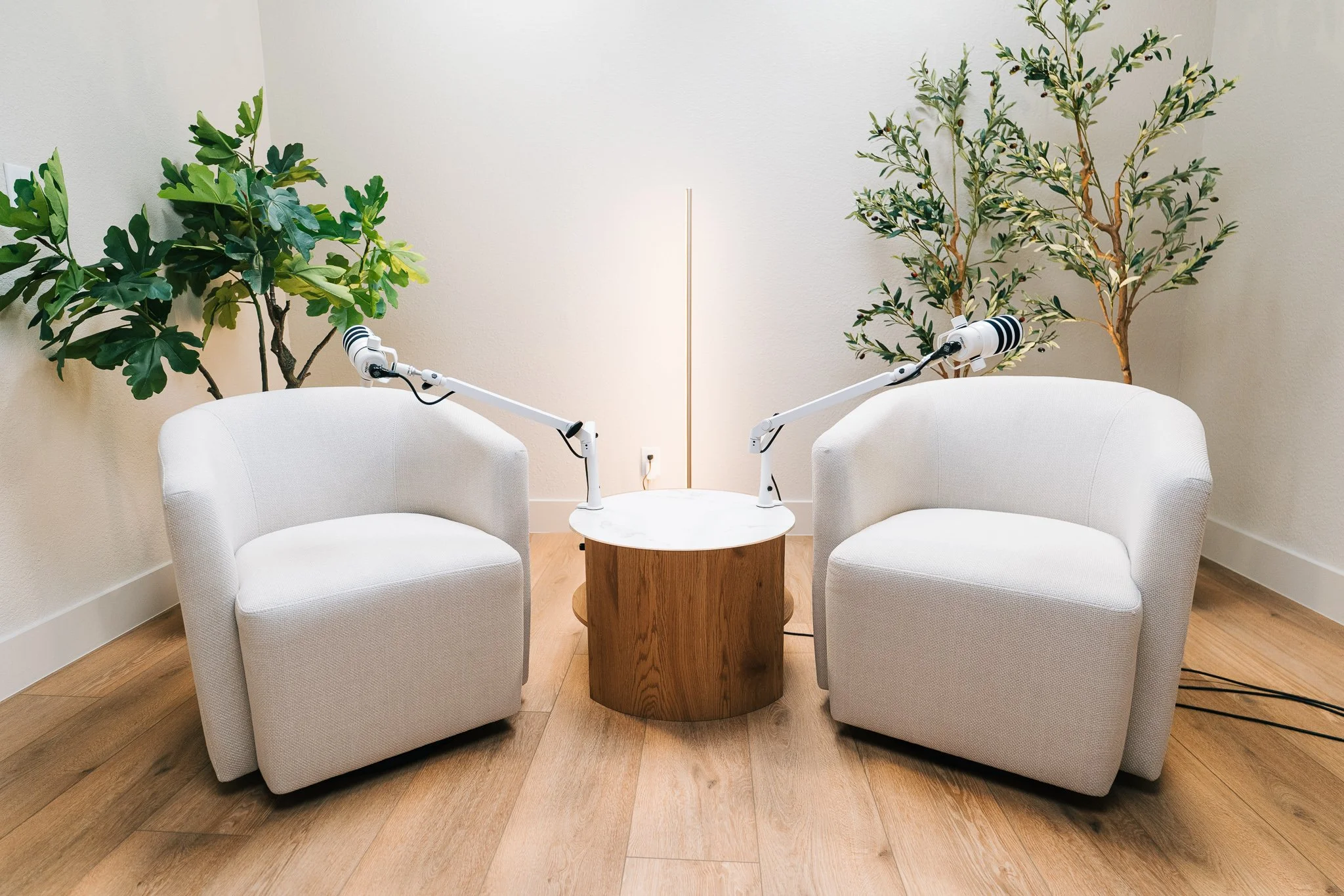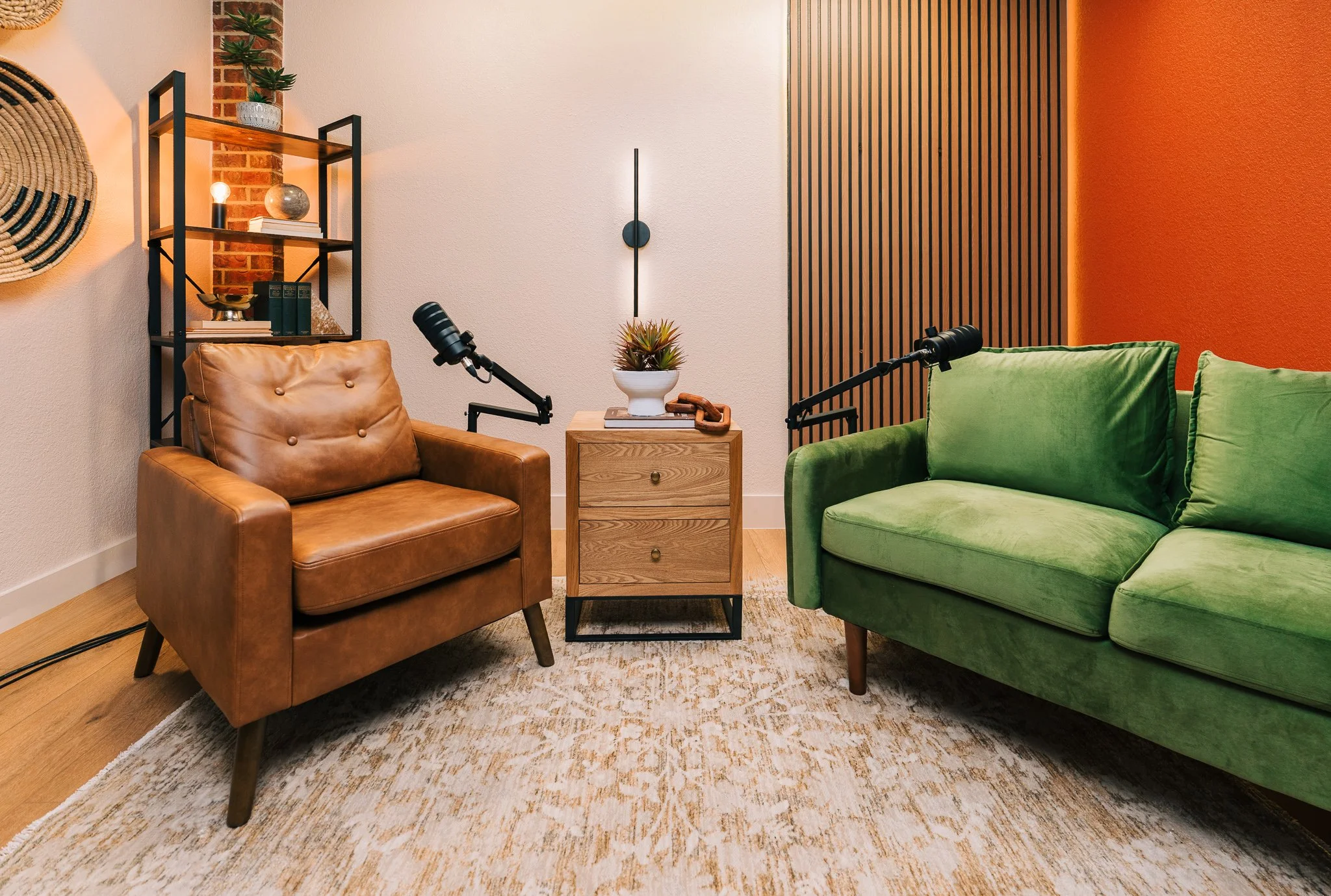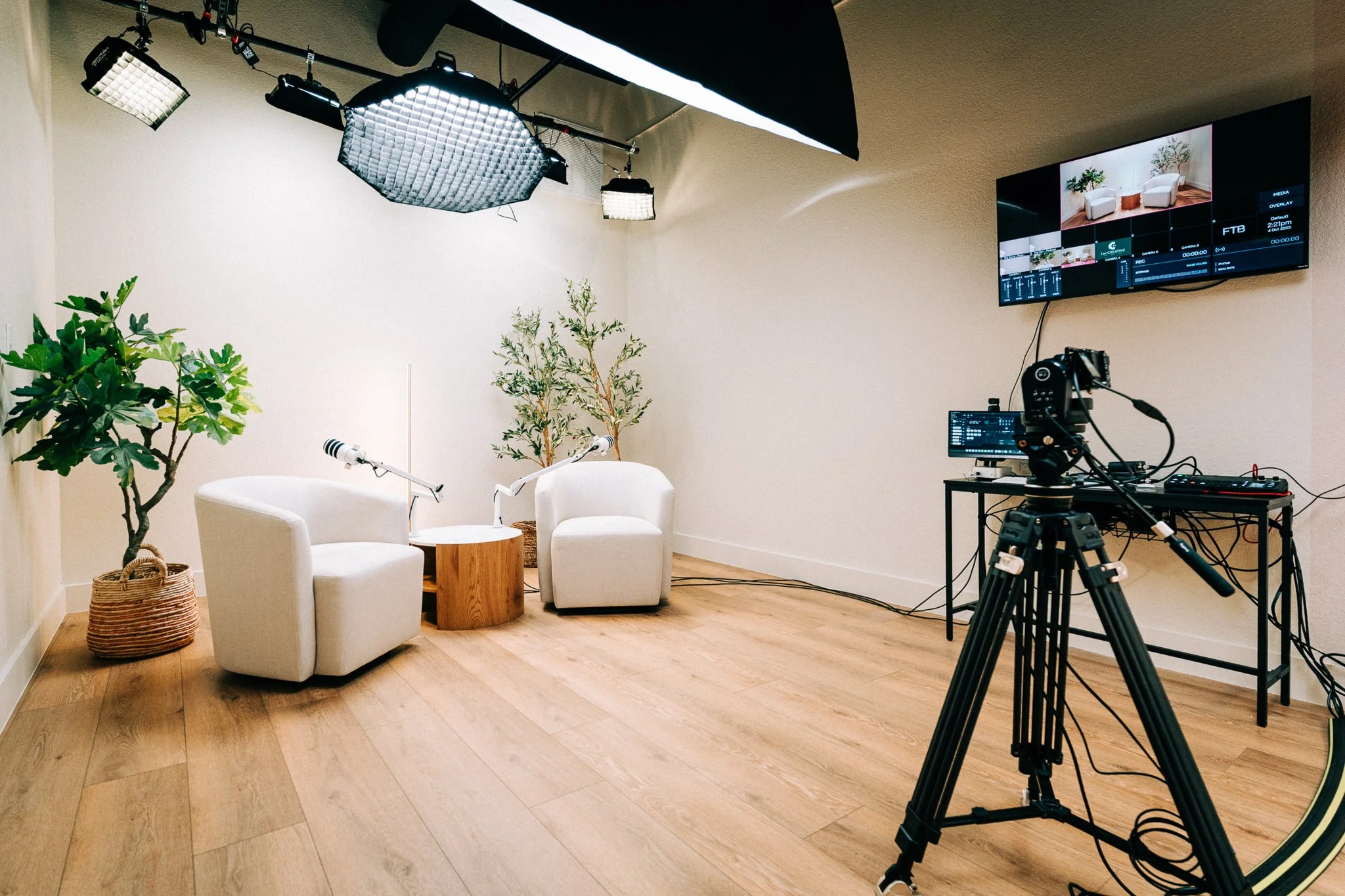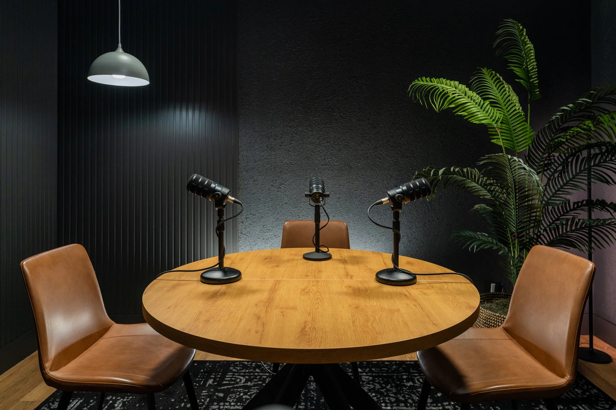 A professional yet inviting space for business interviews, leadership podcasts, and coaching sessions.
